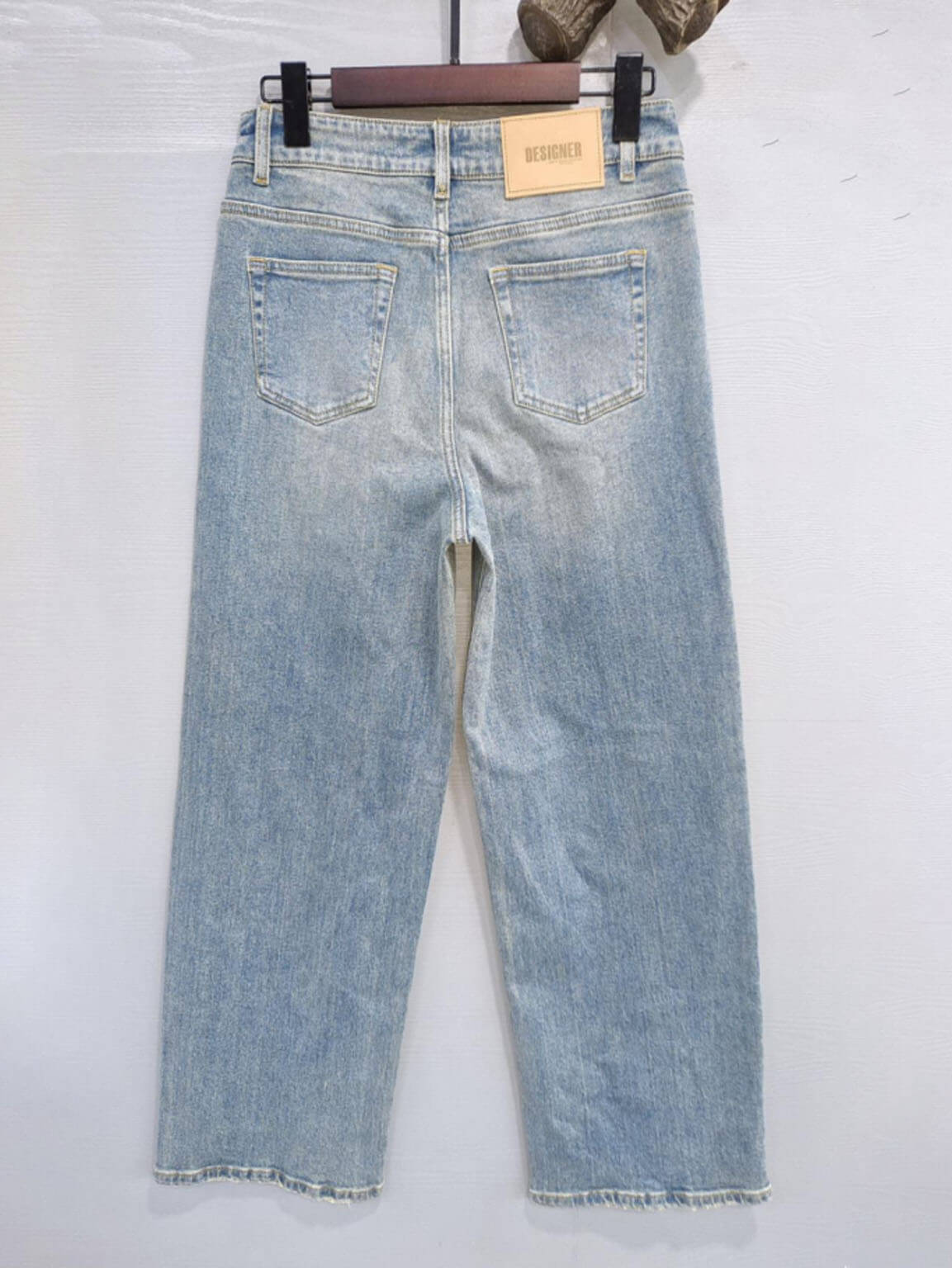 Vintage Light Blue Straight-Leg Jeans – Premium Washed Denim