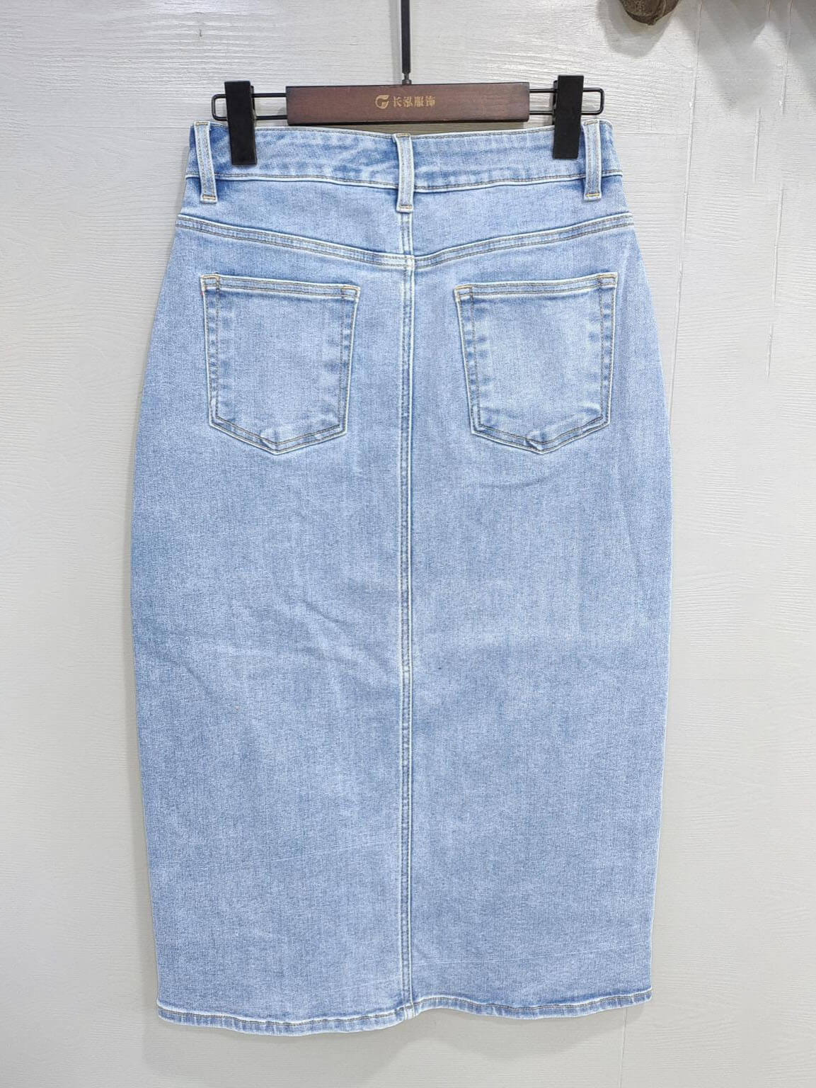 Bring timeless elegance to your denim collection with this high-waisted button front denim midi skirt. Made from premium light blue washed denim, it features a sleek pencil silhouette that enhances natural curves while maintaining all-day comfort. The side button closure adds a modern touch and makes it easy to wear, giving the skirt a chic and minimalist vibe. Designed with classic five-pocket styling and durable seams, this skirt perfectly balances vintage charm and contemporary sophistication. Ideal for pairing with blouses, cropped tops, or denim jackets for a refined yet casual look — perfect for both workdays and weekends.