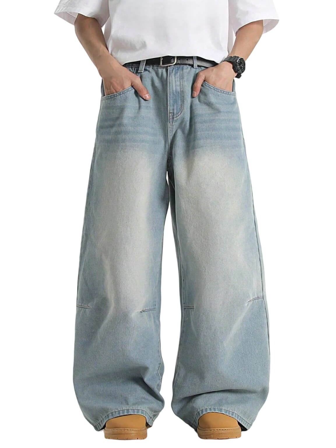 Refresh your casual wardrobe with these light blue vintage washed men’s jeans. Made from a soft blend of cotton, полиэстер, and viscose, they offer a breathable, non-stretch feel for all-day comfort. The loose straight-leg cut and mid-waist design deliver a relaxed yet stylish silhouette, perfect for streetwear, college life, or weekend outings. A versatile piece that pairs effortlessly with tees, толстовки, or jackets.