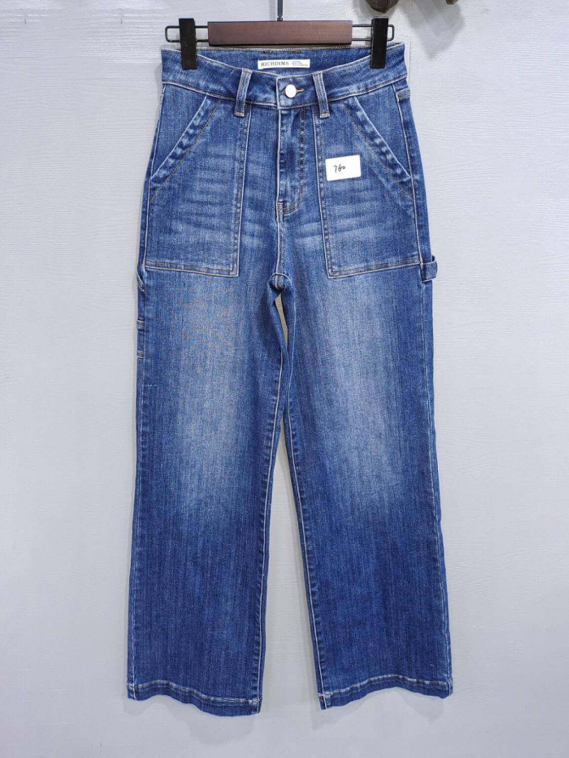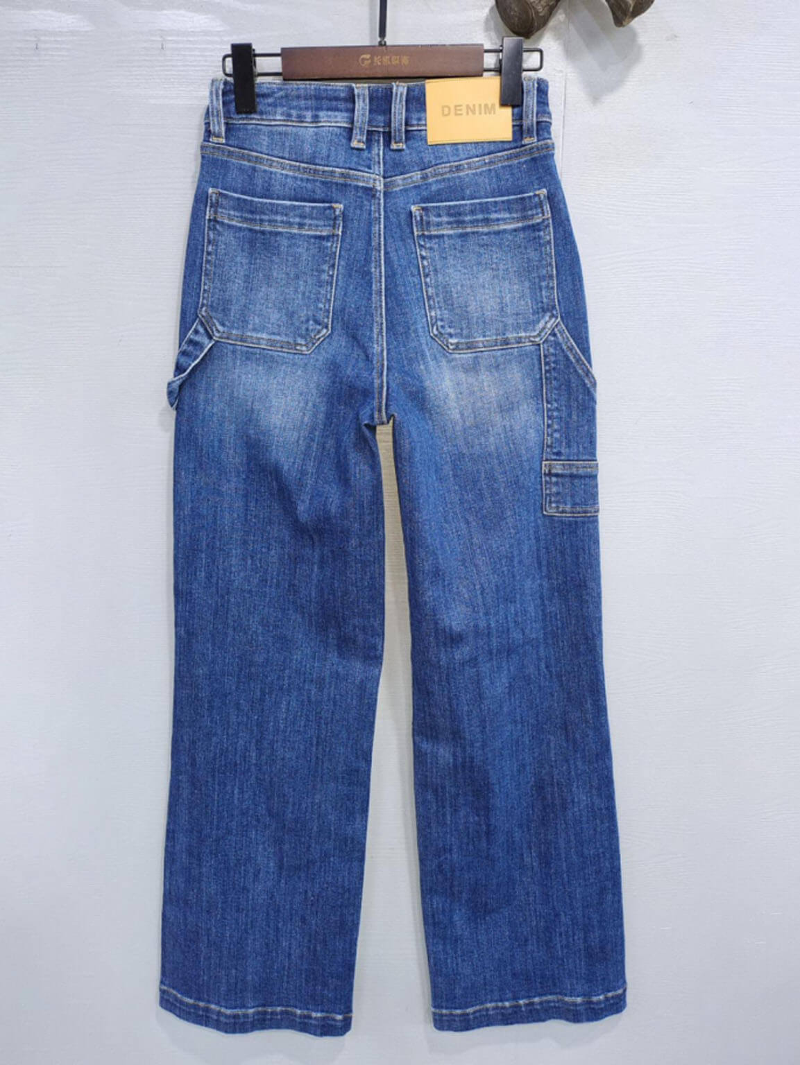 These classic blue cargo wide-leg jeans perfectly blend practicality and style, adding a touch of flair to your wardrobe. Made from a dark blue washed denim fabric, they feature multiple practical cargo pockets and a wide-leg cut, combining functionality with a modern feel. Whether you’re aiming for a casual, laid-back look or a sophisticated streetwear style, these jeans are easy to style, offering both practicality and a comfortable, расслабленная подгонка.